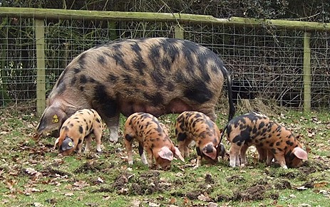 The Oxford Sandy and Black pig produces excellent pork, bacon and ham.